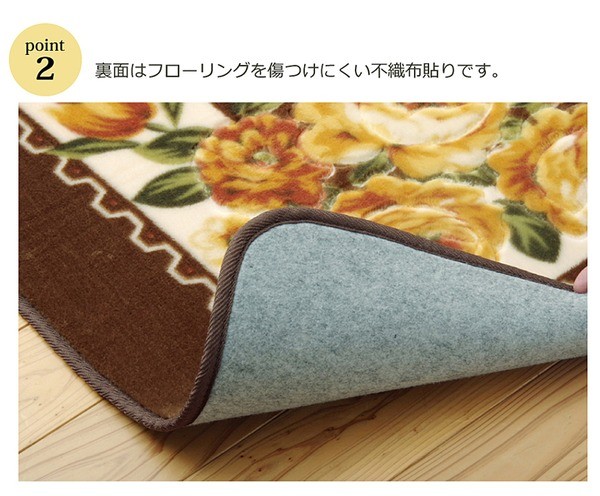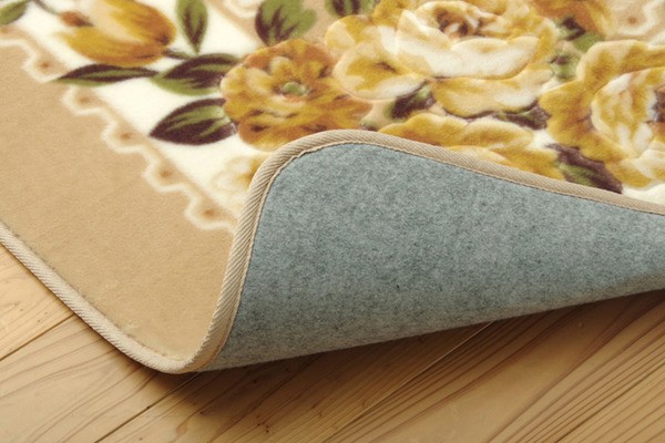 絵羽柄のラグです。表地には柔らかい肌触りの、短毛のボア素材を使用しています。ホットカーペットカバーとしてもご使用いただけます。