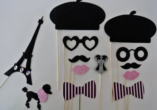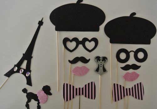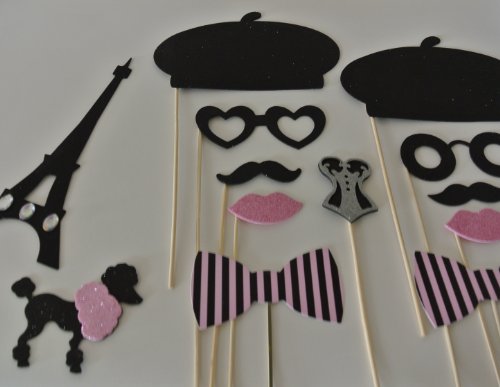 Parisian Inspired Photo Booth Props Mustache on a Stick 13 pc