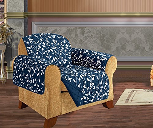 Elegant Comfort QUILTED FURNITURE PROTECTOR for Pet Dog Children Kids - Special Treatment Microfiber As soft as Egyptian Cotton, Navy Chair Leaf Design