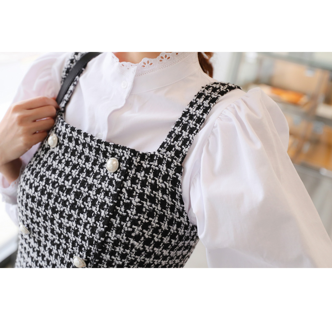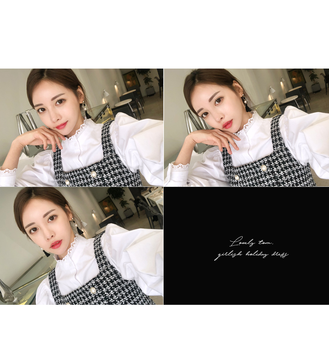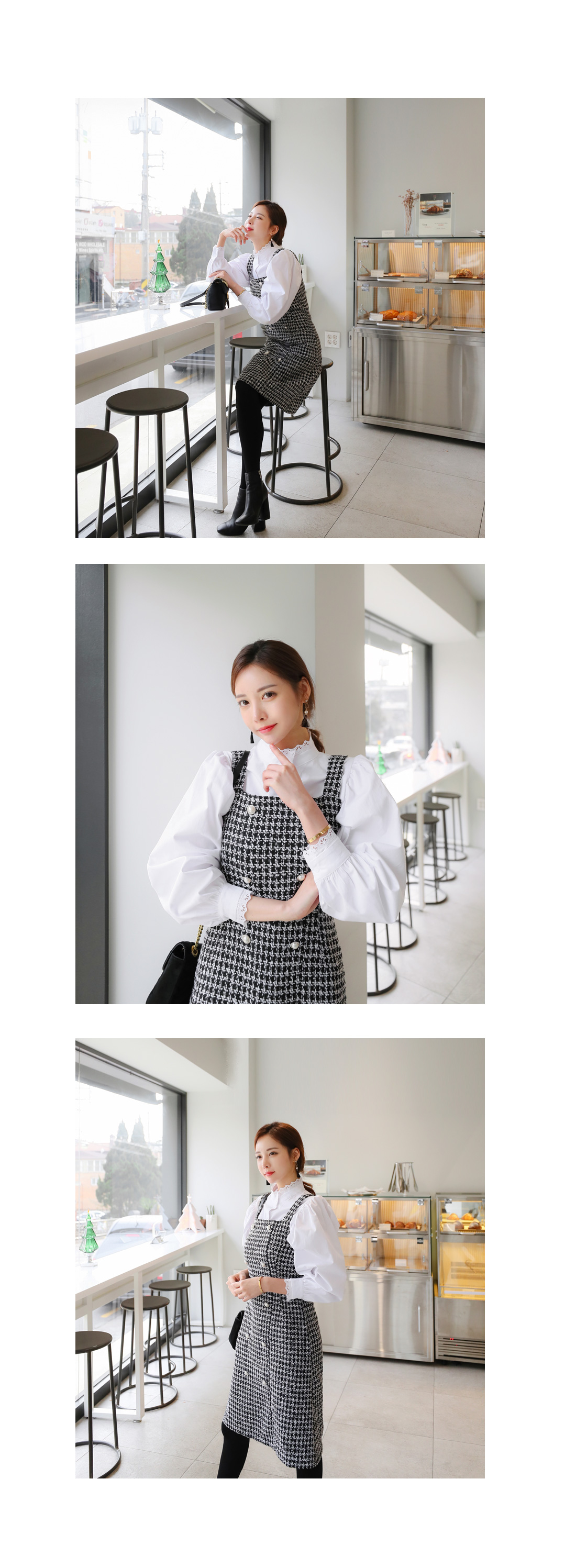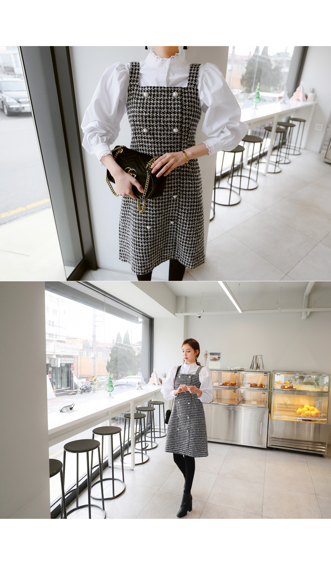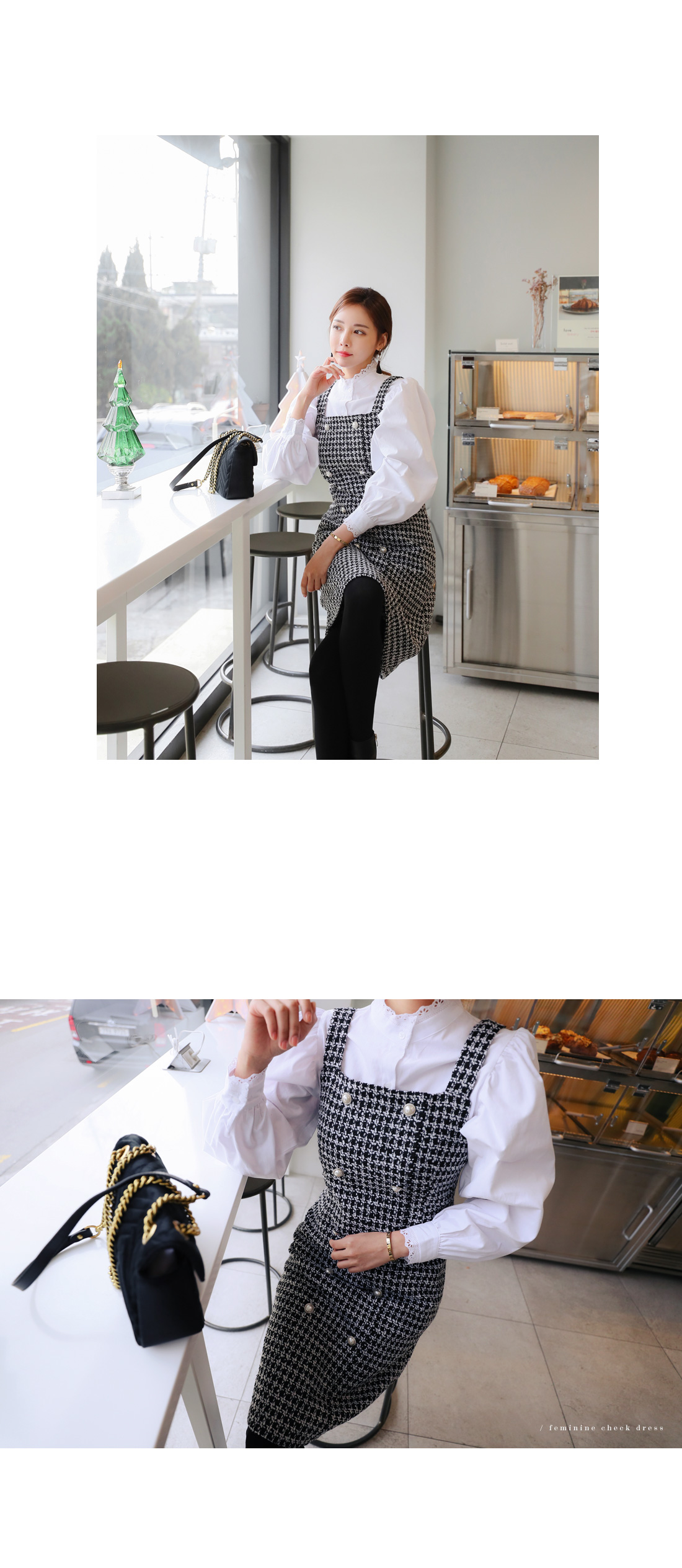 여성스러운 무드의 진주 단추 원피스를 소개합니다.