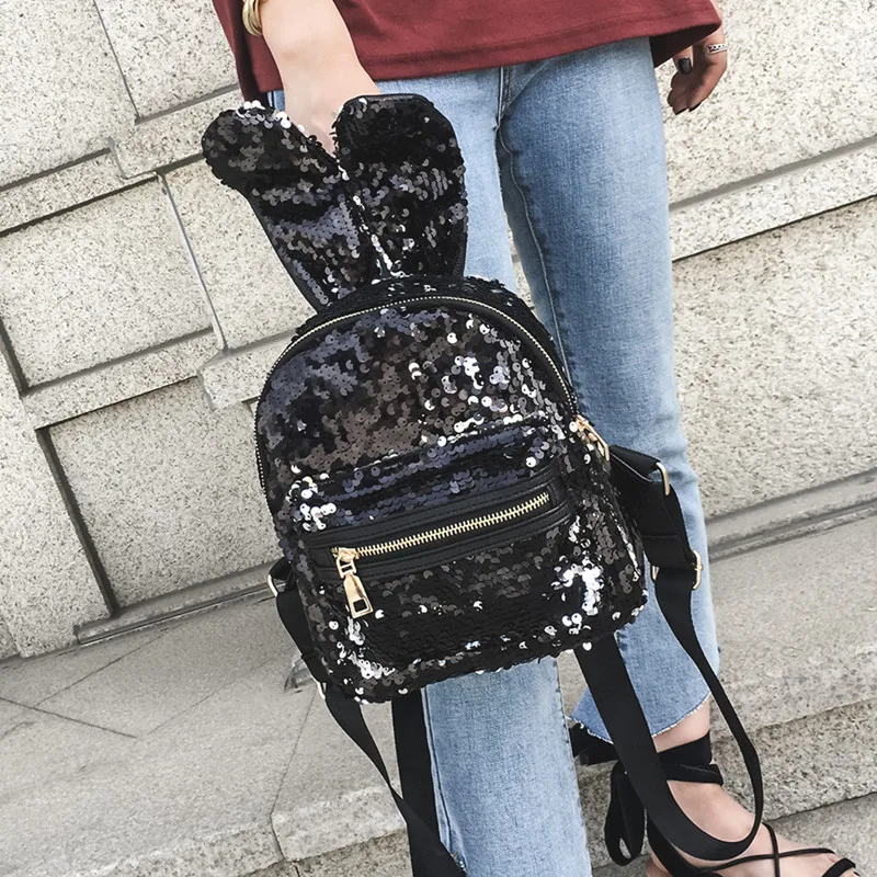 reversible sequin bag:white women backpacks