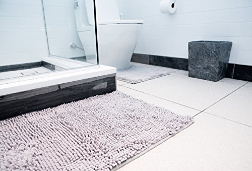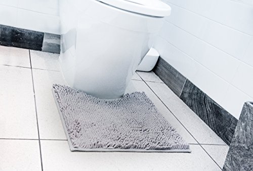 Luxury Home Textiles Microfiber Bathroom Floor Contour Rugs Combo, Set of 2 Soft Shaggy Non Slip Quick Dry Machine Washable Bathroom Mat (32x20) and U-shaped Toilet Floor Rug (18x18) (Grey)