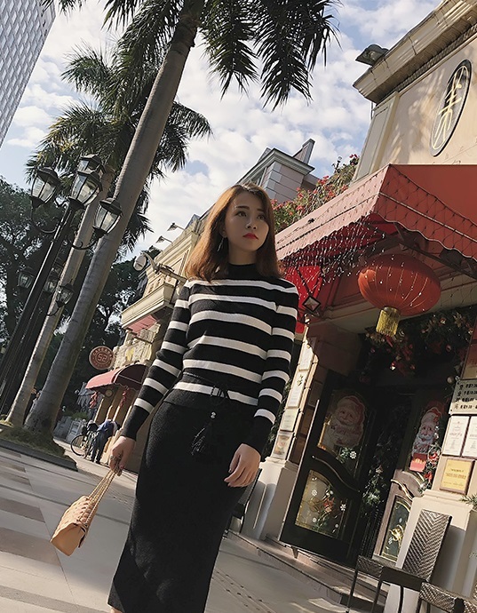 トップスはボーダー柄でカジュアル