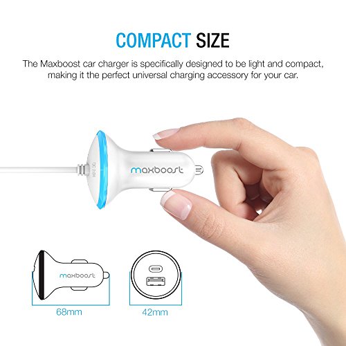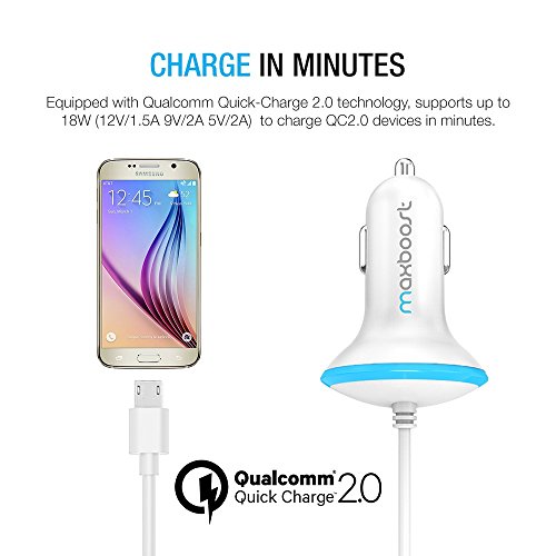 Maxboost Quick Charger 2.0 30W Car Charger [White] with 3ft Lightning Cable Output [White] [Apple MFI Certified][White] For iPhone, Galaxy, LG, HTC, Window Phone and other Android Phone