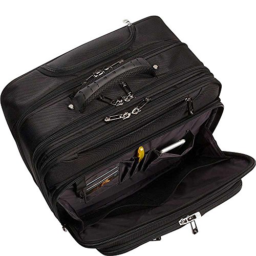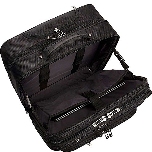 Product Description Heritage Streeterville Triple Gusset Top Zip Wheeled 15.6" 17.0" Computer Portfolio_x000D_ Holds Two Different Sized Computers: Accommodates Laptops With Up To A 15.6”Screen And A 17.0” ScreenCompatible With Most Tablets1680D Polyester Exterior And Fully Lined InteriorFront Exterior Features Full Length Zipper Pocket, Hidden Zippered Stash Pocket, Two U-Shaped Zip Down Gusseted Pockets, And Zippered Valuables Pocket Lined With Protective, Soft Brushed PolyesterFront U-Shaped Zip Down Pocket Includes Two Open Top Accessory Pockets And Padded Tablet PocketFull Length U-Shaped Zip Down Pocket Consists Of An Organizer Made To Hold A Variety Of Business Essentials Including A Key Fob, Cell Phone, And Tech AccessoriesFront Compartment Features Two File DividersCenter Compartment Includes A Padded Computer Pocket For Up To 15.6” Laptops And Padded Rear Section With Straps To Secure Up To A 17.0” LaptopRear Compartment Has Secure Garment Straps And Two Open Elastic Top Mesh PocketsRear Exterior Trolley Tunnel Fits Over Most Luggage Upright Handles For Hands Free CarryingDurable, Padded Top Handle And Bottom Foot Grab Handle Allow For Easy Lifting; Retractable Locking Handle And In-Line Skate Wheels Provide For Easy Mobility_x000D_ Overall Size: 16.75" W x 15.0" H x 10.5" D17" Computer Compartment Size: 15.5" W X 13.0" H X 1.75" D15.6" Computer Compartment Size: 15.25" W x 11.5" H x 1.75" DWeight: 7.5 lbs 0