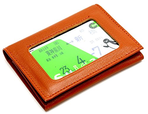 [맨즈 컴퍼니]Mens company 패스 케이스2 전면 클리어 타입 일본 제본 가죽 (캬멜 브라운)