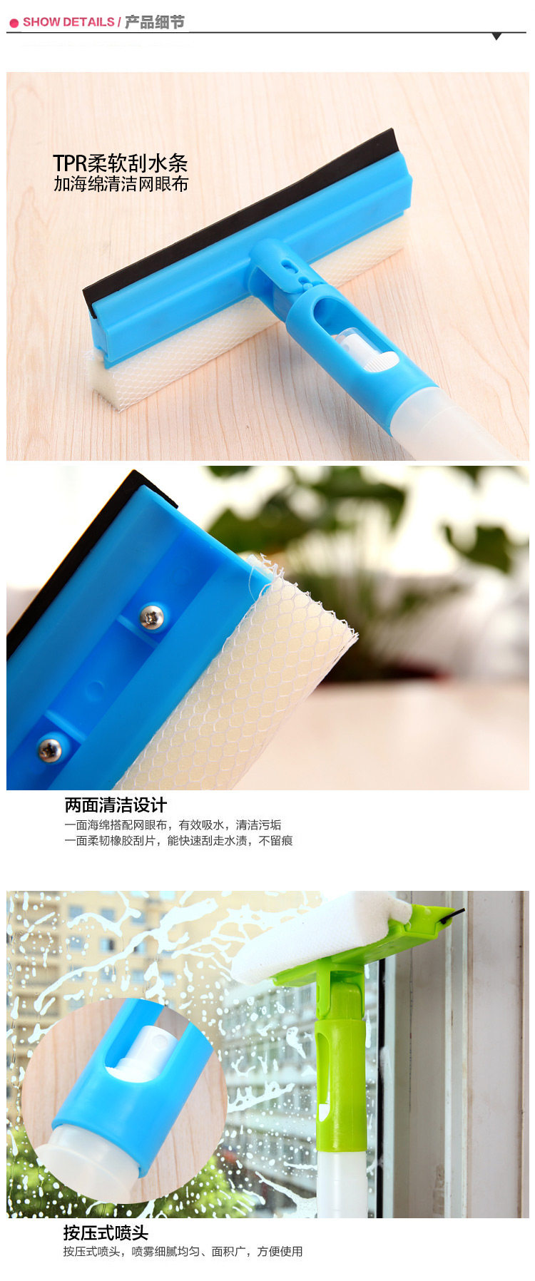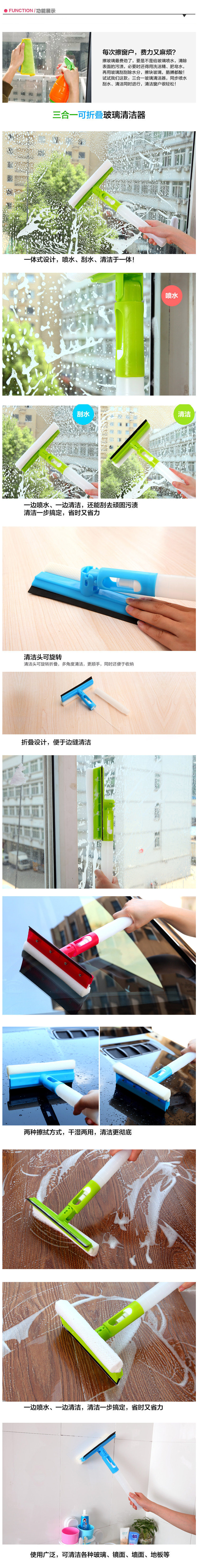 多用途一体喷水式 玻璃清洁器 擦窗器玻璃刮 瓷砖地板刮