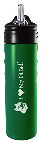 24oz. Stainless Steel Grip Water Bottle with Straw-I love my Pit Bull-Green