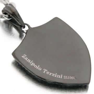 エンブレムモチーフにキラリと光る一粒の輝きが高級感ダダ漏れネックレスです。ヘアラインと呼ばれる美しい縦線☆モダンスタイルを完成させるのに欠かせない一品☆