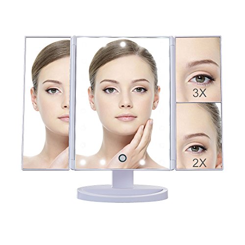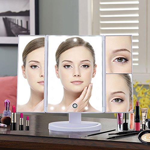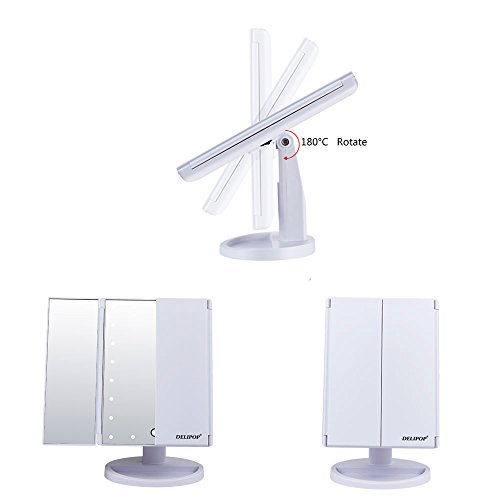 Portable led mirror: The light mirrors can be closed like a book to avoid dust ,and removable base to carry for travel.