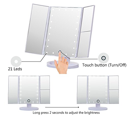 High brightness: The makeup vanity mirror built in 21pcs leds, for using in dark place.At the same time, long press 2 senconds, can adjust the brightness.