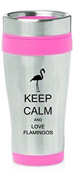 Hot Pink 16oz Insulated Stainless Steel Travel Mug Z414 Keep Calm and Love Flamingos