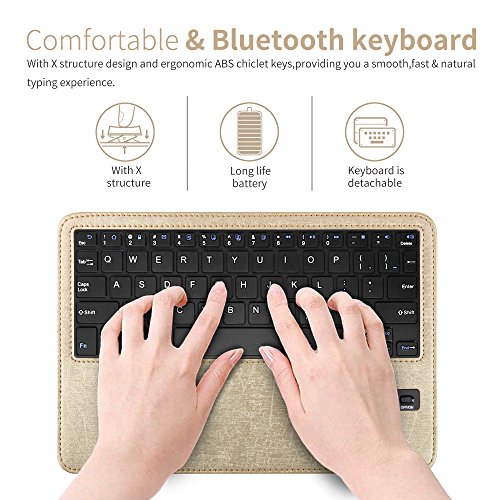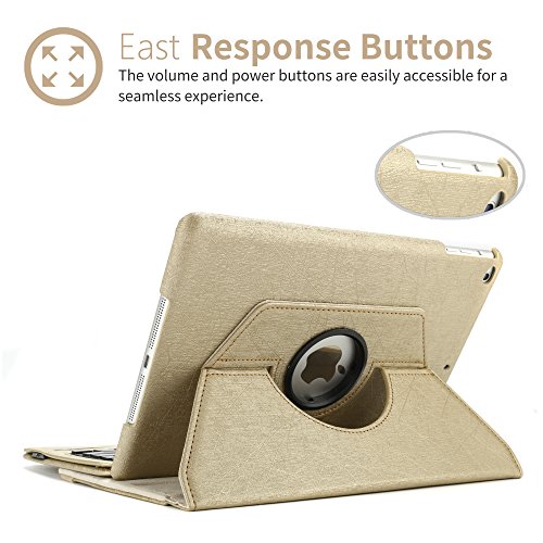 Boriyuan New iPad 9.7 inch 2017 Keyboard Case - 360 Degree Rotating Stand Cover with Bluetooth Wireless Keyboard for Apple New iPad 9.7 inch 2017 (Gold)