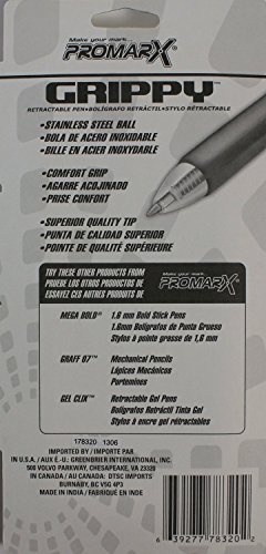 -. Title : Promarx Grippy 1.0mm Retractable Pens, Blue Ink, Comfort Grip, 4-pack