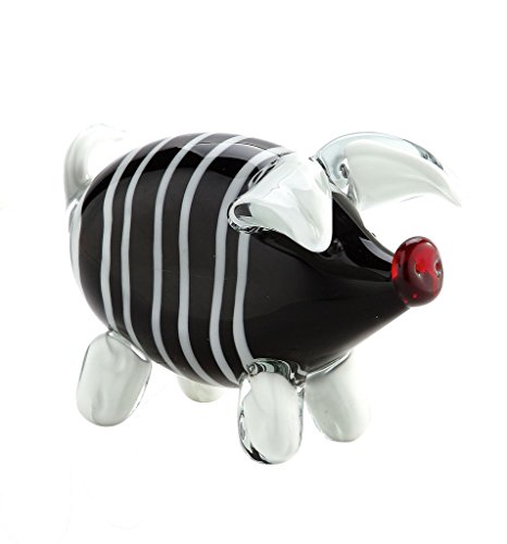 -. Title : New 6" Hand Blown Glass Murano Art Style Pig Figurine Sculpture Black White