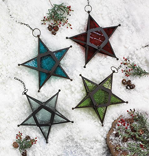 -. Binding : Kitchen -. Brand : Gallery of Light -. Color : Green -. EAN : 0849179029067 -. Feature : Beautifully designed panels of green glass set in a wrought-iron frame / Use a regular candle or a flameless candle / 10.2 x 3.5 x 9.5 inches tall / Chain included, candle not included -. IsAutographed : 0 -. Label : Tom & Co. -. Manufacturer : Tom & Co. -. Model : 10017756 -. MPN : 10017756 -. PackageQuantity : 1 -. PartNumber : 10017756 -. ProductGroup : Home -. ProductTypeName : HOME -. Publisher : Tom & Co. -. Studio : Tom & Co. -. Title : Glass Star Hanging Candle Lantern - Green -. UPC : 849179029067