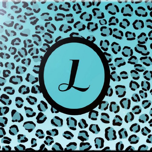 Rikki Knight RK-12intilec-2545 12" X 12" Letter "L" Sky Blue Leopard Print Monogrammed Design Ceramic Art Tile