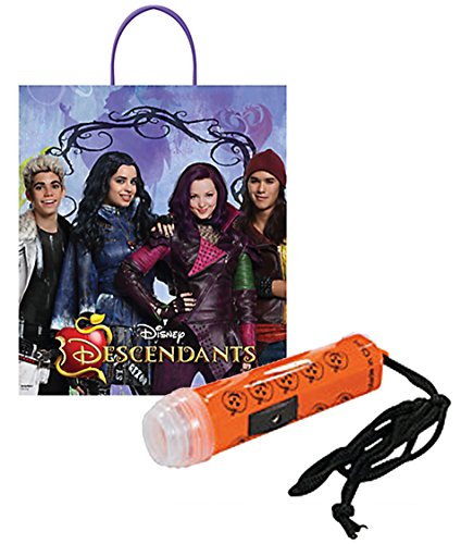 -. Binding : Toy -. Brand : Amscan -. EAN : 0761656256868 -. Feature : Disney Descendants Trick-or-Treat Bag - 14in x 16in Plastic Bag. The Disney Descendants Trick-or-Treat Bag matches your little one's costume. This Halloween candy bag features Mal, Carlos, Evie, and Jay. Plastic handles make this Disney Descendants treat bag easy for your little one to carry around. / Plus Bonus - "Safety First" (1) Mini Halloween Flashlights Necklace! / Spark some fun with these plastic flashlights! Make trick-or-treating safer by giving them to ghouls and goblins! Each 4" flashlight is on a 30" rope. Each requires 1 "AA" battery, not included. -. IsAdultProduct : 0 -. Label : Amscan -. Manufacturer : Amscan -. ProductGroup : Toy -. ProductTypeName : TOYS_AND_GAMES -. Publisher : Amscan -. Studio : Amscan -. Title : "Disney Descendants" Happy Halloween Trick or Treat Candy Loot Bag!! Plus Bonus "Safety First" Mini Halloween Flashlight Necklace! -. UPC : 761656256868