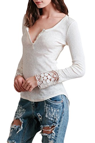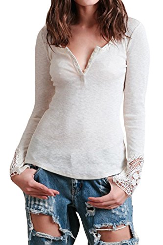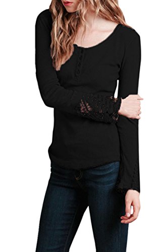 -. Title : PinkWind Women's Lace Stitching Button Down Henley T-Shirt Blouse Tops