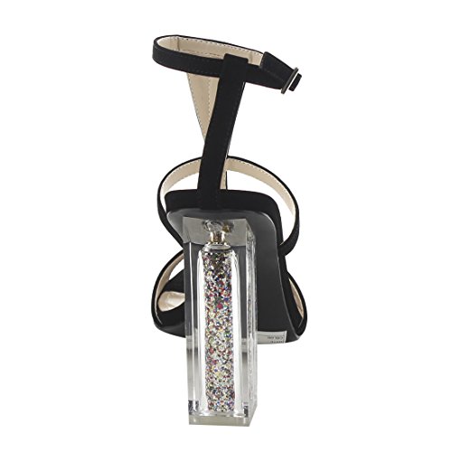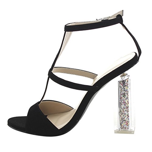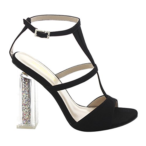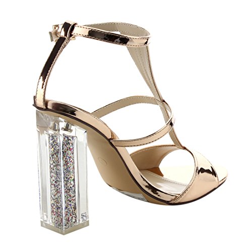 BONNIBEL FJ58 Women's Clear Chunky Heel Ankle Strap Dress Sandals