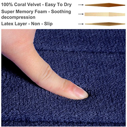 uxcell Bathroom Mats Non-slip Soft Absorbent Memory Foam Rugs Carpet Navy Blue 32 x 20 Inch