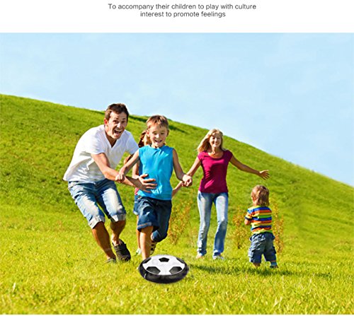 Features: With the modest size of 7.1" which is similar to Size 4 soccer, a little bigger than other competitors. Neither too big nor too little. It is a nice toy for family playing together and multiplayer game. To cultivate child's interest, enhance child's curiosity, play it in big family to enhance the feelings between them. The Air Power Soccer Disk is an amazing new disk that turns nearly any smooth surface into a sports court, inside or out. Use it on a low-pile carpet, hardwood floor, sidewalk or a driveway! As long as you have a flat surface, there's no end to the ways you can play. It has a powerful hover action that makes the Air Power Soccer Disk literally float on a cushion of air. The disk's outer protective bumper safely protects furniture and walls while allowing for great rebounding!