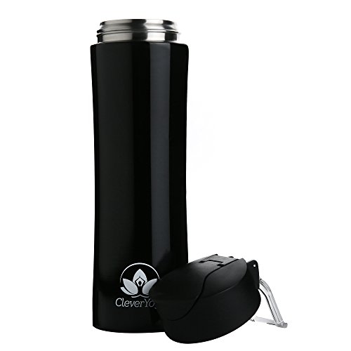 Stainless Steel Double Wall Vacuum Insulated Water Bottle Leak and Sweat Proof Keep Drinks Hot Cold for Gym Office Sports Hiking Travel By Clever Yoga (Black)