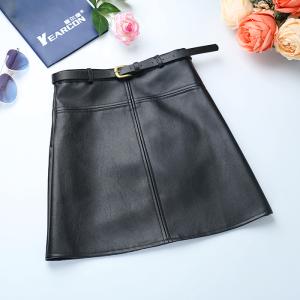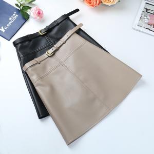 レザースカート ハイウエスト ベルト付き ミニスカート 台形 大人 無地 プチプラセール 秋冬 シンプル