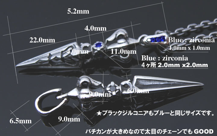 【SIZE】 W=9mm H=52mm(バチカン含む)   CZ(Black) 径=2.0mm×4 径=1.0mm×3 【素材】シルバー925
