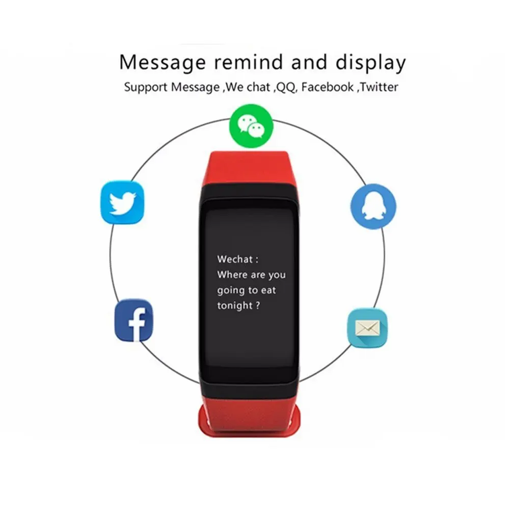 Function:Blood Pressure,Passometer,Sleep Tracker,Push Message,Blood Oxygen,Heart Rate Tracker,Alarm Clock,Remote Control,Fitness Tracker,Social Media Notifications,Message Reminder,Week,Call Reminder