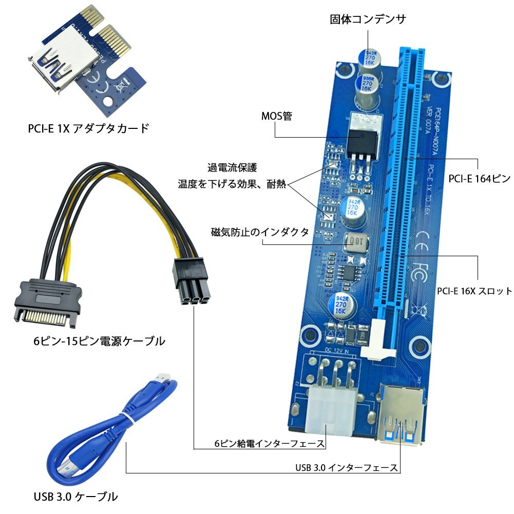 [6 pieces] PCI - E 1x - 16x extender riser card adapter