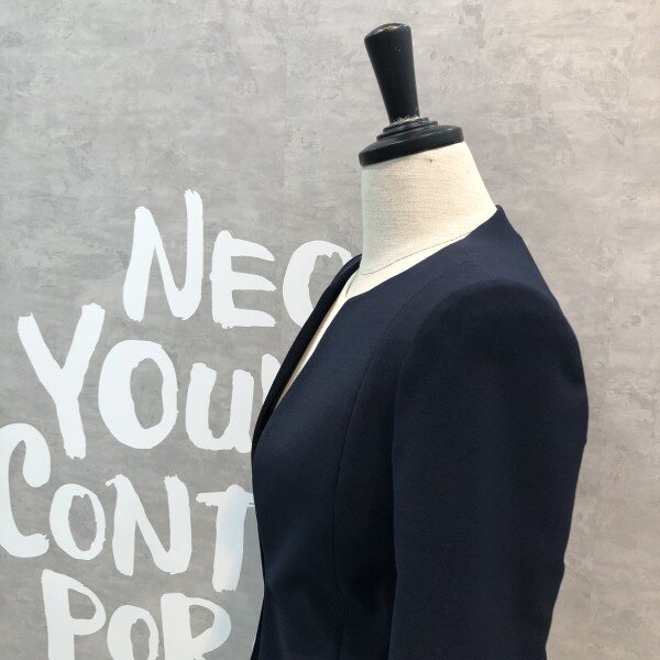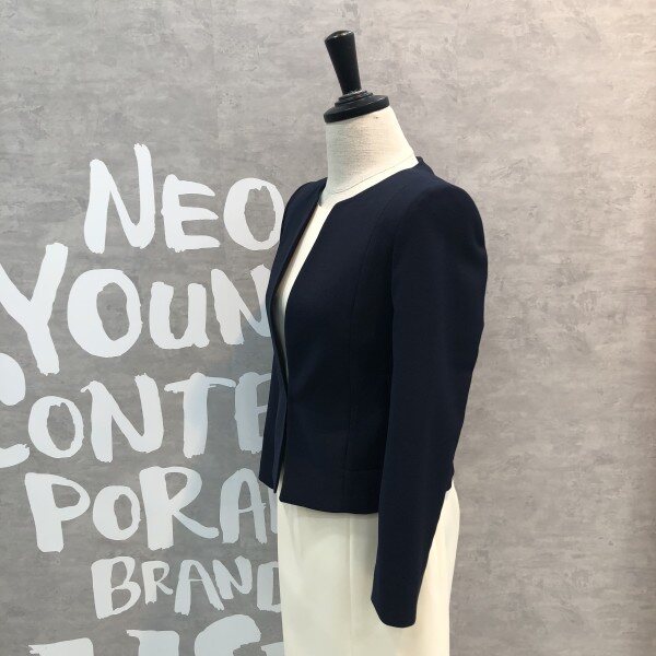 심플하여 더욱 고급진 노카라 디자인의 숏자켓으로 여성스러운 실루엣 연출이 가능한 라인의 자켓입니다