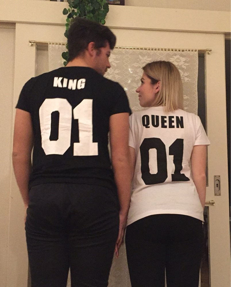 QUEEN KING 01 Letter Print T-Shirt: king queen t shirts