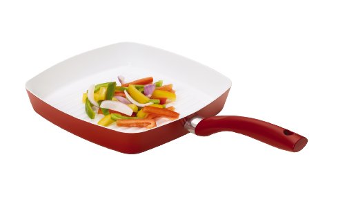 This Pedrini 10-1/2 Inch Aluminum Grill Pan with Ceramic Interior is made of heavy-gauge aluminum for even heating. The stain-resistant white ceramic interior has a nonstick coating for easy food release and quick cleanup. PTFOA and PTFE free for healthy and eco friendly cooking. Dishwasher safe.