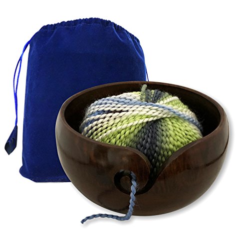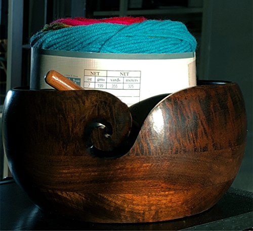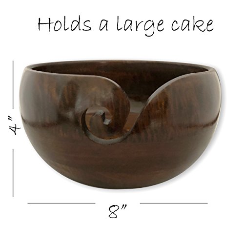 Larger than average wooden bowl to store small & large balls of crochet yarn. With an XL diameter of 8"& 5" height it'll comfortably hold cakes, skeins, and chunky yarn - a must have after preparing with a ball winder! An excellent quality and value!