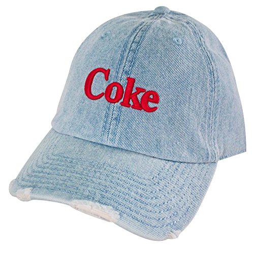 -. Title : Coca-Cola Coke Distressed Light Embroidered Denim Adjustable Hat