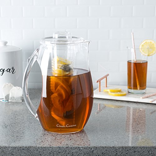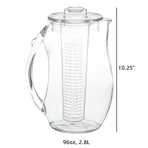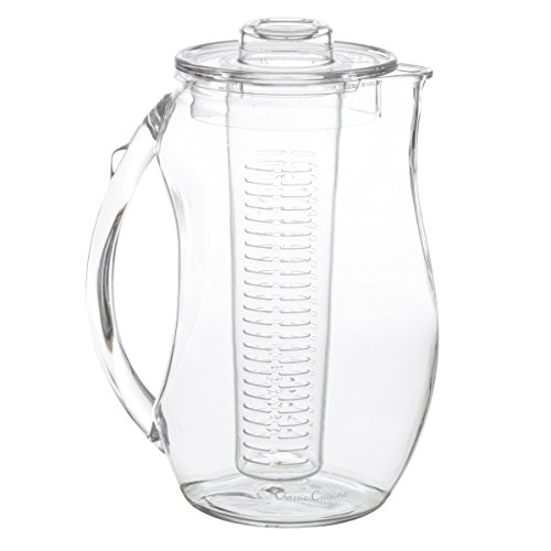 Instantly upgrade your favorite beverages with the Infusion Pitcher by Classic Cuisine! The container holds up to 96oz. of liquid, making it the perfect size for serving a crowd, or simply for your weeknight dinners. The removable infusion tube can be filled with tea bags, berries, cucumber, lemons, oranges, apples, or anything else you like, to add a flavorful twist to water, iced tea, lemonade, juice, or cocktails! It’s an elegant serving piece to use at your next birthday party, wedding shower, barbecue, or event, while also being sturdy and practical for everyday use. SATISFACTION GUARANTEED: Classic Cuisine is committed to providing the consumer with the absolute best price and value on our entire line of products, which we ensure by applying a rigorous quality control process. NOTE: This is an exclusive product of Classic Cuisine and ONLY Infusion Pitcher by Classic Cuisine is GUARANTEED to be genuine IMPORTANT: Avoid buying counterfeit products and transacting with unauthorized sellers. Look for our logo on the packaging for every one of our products.Feature