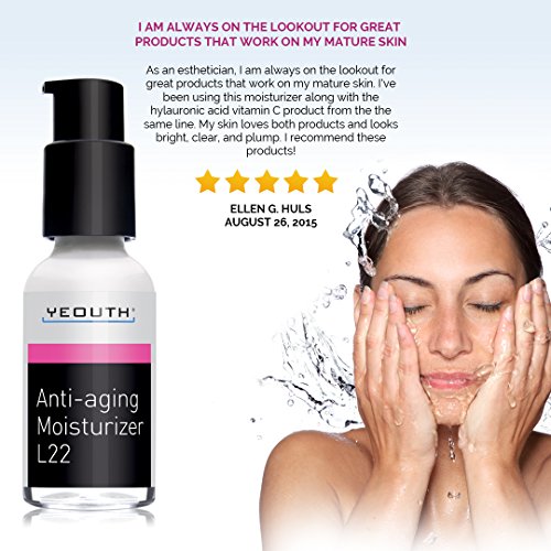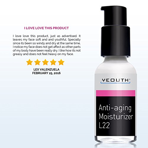 "Super Soft & Luxurious... Creamy.. Hydrating.. Love this Moisturizer!"-Cassandra YEOUTH Anti Aging Moisturizer L22 beats other cream, lotion, serum and toner products, making a visible difference in the look of crow's feet, wrinkles and fine lines, improving skin tone and diminishing discoloration from sunspots, blemish and age spots. L22 is safe for all skin types, even the most sensitive skin around the eye and works as an anti wrinkle cream.