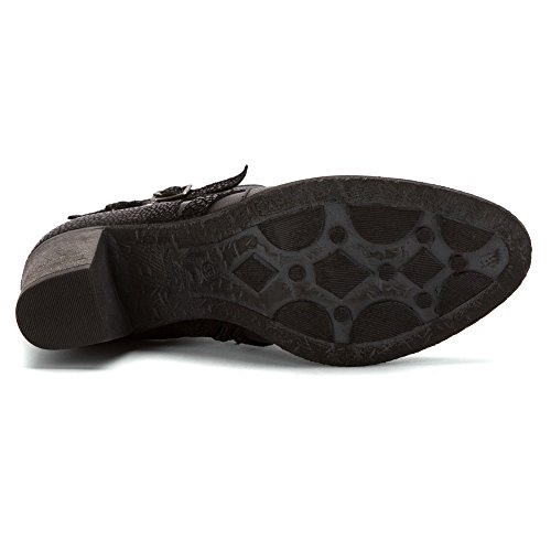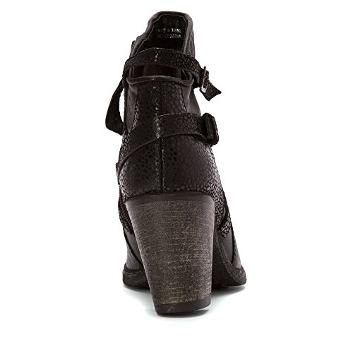 Studio : Miz Mooz Footwear Publisher : Miz Mooz Footwear Binding : Shoes Product Description A high-heeled, city-girl style that contrasts smooth leather with leather that's been embossed to look like shagreen: "Rosana," from Miz Mooz's Verona Collection. Featuring non-functional crisscross straps, an exaggerated throat, an inside zipper for easy on/easy off, and a 3-inch stacked heel. Made in Europe from hand-burnished, vegetable-tanned Tuscan leather. 0