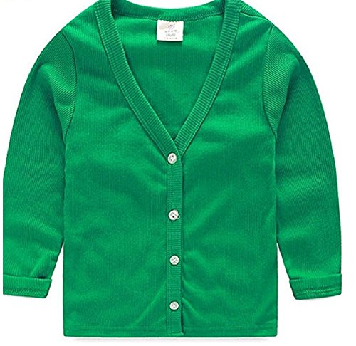 -. Title : (ヨーテイ) Youtei 春 秋 子供 用 ニット V ネック 無地 リブ スプリング コットン カーディガン キッズ (140cm, グリーン)