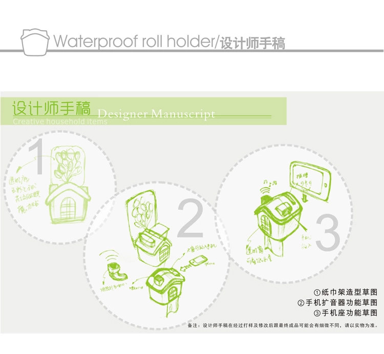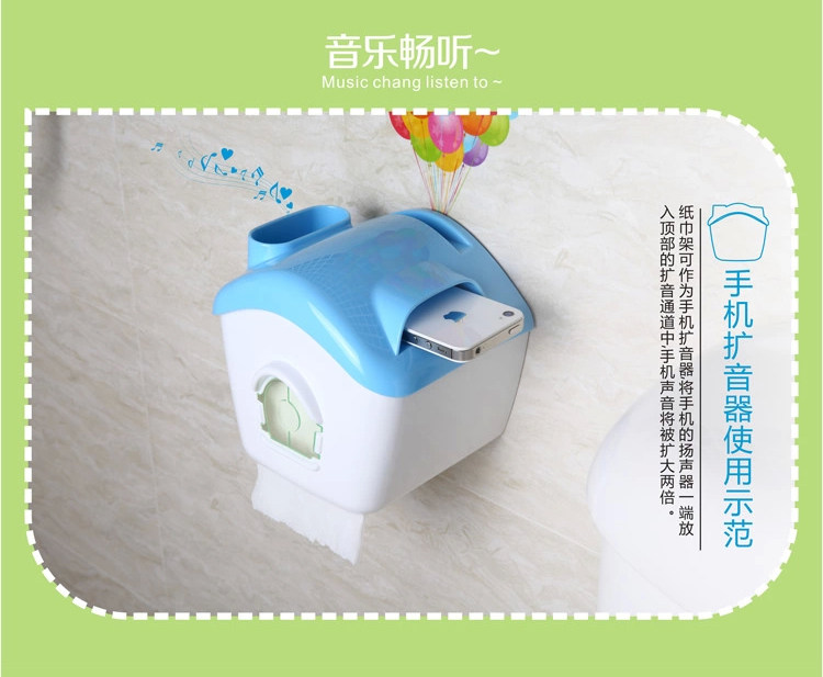 具有强力粘贴性,在浴室等较潮湿的环境也可方便使用,防水特别好,此纸架既可快速高效随意撕纸,也可单手侧面快速撕纸,纸盒也具有扩音器,适合4.7寸手机随意放入卡槽,方便时也可享受音乐,产品材质好,无气味不掉色,