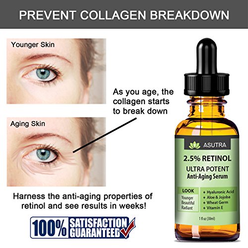 - SEE RESULTS WITHIN WEEKS - GUARANTEED: Our Vitamin A (Retinol) has a molecular structure that's tiny enough to get into the lower layers of skin where it finds collagen and elastin and activates them. Vitamin A is proven to improve mottled pigmentation, fine lines, wrinkles, skin texture, skin tone and color, as well as your skin’s hydration levels. TRY IT - if you don’t see results, we will refund your money - no questions asked.