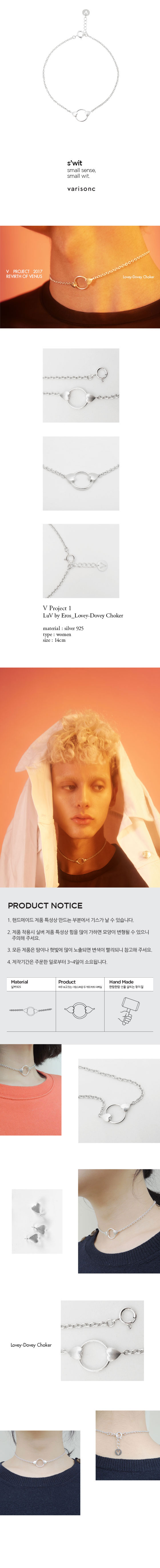 | Luv by Eros_Lovey Dovey Choker 심플한 원 위에서 서로 마주보고 있는 두 개의 하트 디테일이 마치 사랑의 마음을 표현해낸 듯한 디자인의 실버 체인 초커입니다. 언제나 보고 있어도 보고싶고, 가지고 있어도 더 갖고 싶은 사랑의 마법에서 벗어날 수 없게 만들어 주는 마법 같은 제품입니다. [제품 안내] - 심플한 디자인의 실버 체인 초커입니다. - 제작기간은 주문한 일로부터 3~4일이 소요됩니다. - 핸드메이드 제품 특성상 만드는 부분에서 기스가 날 수 있습니다. 실버제품 특성상 힘을 많이 가하게 되면 모양이 변형될 수 있으니 주의해 주세요. [A/S 안내] - 구매일 이후 3개월 동안 제품 하자의 경우 무상 A/S 해드리며 추가의 재료가 필요한 경우에는 수선비가 발생할 수 있습니다. - 단, 소재 특성 상 제품 하자가 아닌 고객 부주의로 인한 경우에는 A/S가 어려울 수 있으니 양해 부탁드립니다. - 수선 제품 왕복배송비는 고객 부담입니다. [교환 및 배송 안내] - 제작기간은 주문일로부터 3~4일이 소요됩니다. (영업일 기준) - 베리송크의 모든 제품은 주문제작상품으로 교환 및 환불이 어려우니 신중한 구매 부탁드립니다. - 제품 하자 시에는 동일한 제품으로 교환 가능하며, 받으신 포장상태 그대로 반송 부탁드립니다. |