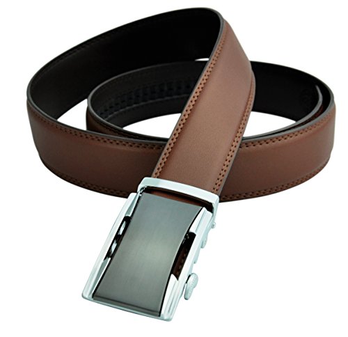 EASY TO USE. Zip it on and Click it off with a simple one button release. The fashionable ratchet belt buckle utilizes an innovative ratchet system and are crafted from zinc alloy, in long-lasting titanium, chrome and matte finishes that are durable and easy to care for.