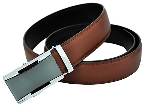 Hampton Men's Leather Belts with Innovative Contempo Ratchet Belt Buckle (One Size, 28-44,Trim to Fit, Triumph Buckle with Saddle Tan Leather)