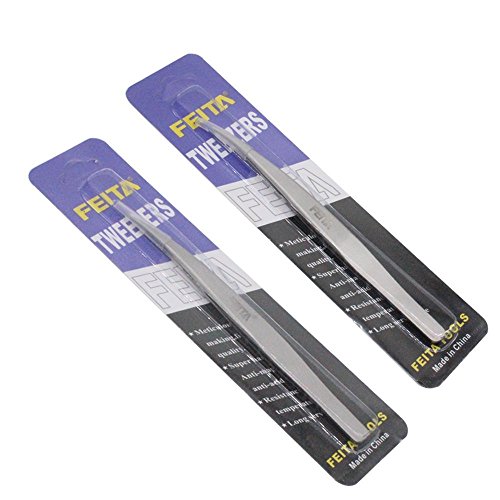 Best Tweezers Precision Set by FEITA - Professional Pointed & Slant Tweezers for Eyebrow Plucking,Eyelash Extension,Eyebrows Applicator