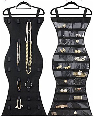 ❤ Strong Storage Space: Two-sided jewellery organiser can hold a lot of necklaces, bracelets, earrings, rings,and hair accessories with 16 hook-and-loop tabs and 39 transparent pockets. This storage organizer is much better than most jewellery armoires, jewellery storage trays and bags.