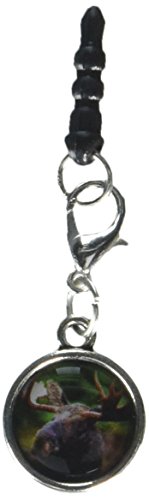 Graphics and More Moose Male Bull Antlers Anti-Dust Plug Universal Fit 3.5mm Earphone Headset Jack Charm for Mobile Phones - 1 Pack - Non-Retail Packaging - Antiqued Silver