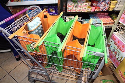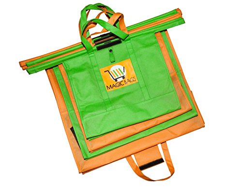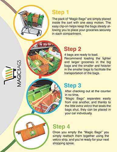 Magic Bags Pack Of 4 Bags – Eco Friendly Reusable Grocery Bags Perfect For Shopping Carts – Detachable, Foldable & Reusable!