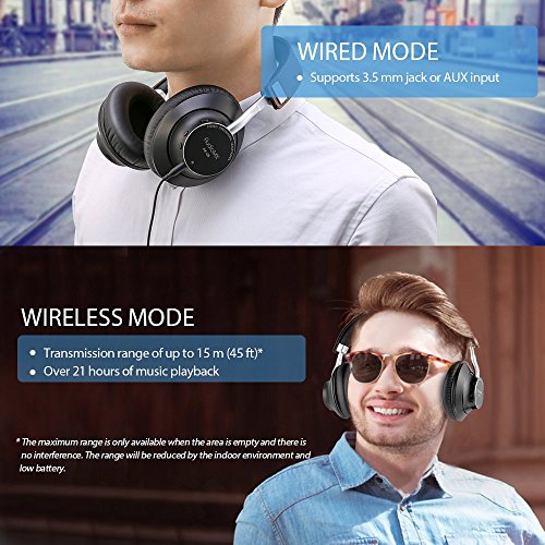 ENJOY ALL-DAY MUSIC: Wireless Bluetooth 4.1 version; superior low power consumption enables over 23 hours of continuous play time; supports wired mode with the audio cable included; EDR technology offers a low latency that you will not feel